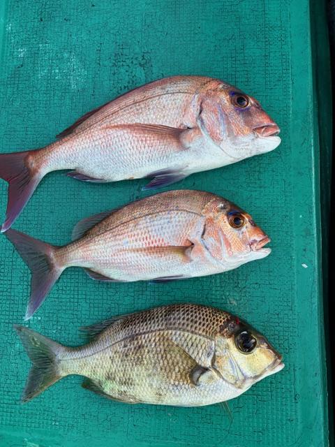 船頭ーマダイ35、45センチ2枚・メイチ35センチ1枚