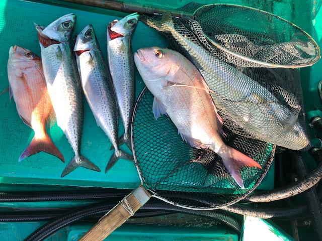 今朝は4日ぶりの凪になりました。マダイ30、48センチ二枚・メジロ65センチ1本・サバ3本の釣果でした。 波1メートル・ゆるい上り潮・水温19.2度iPhoneから送信、