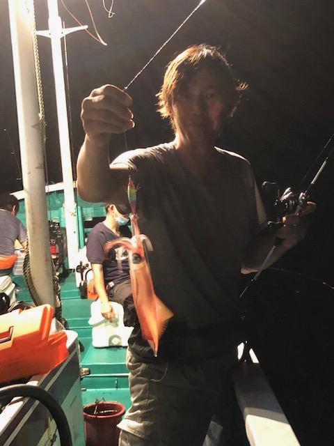 今晩も潮の流れ方悪く、イカの機嫌悪かったです。今晩はシイラが回っていました。イカは取られることなかったですが、影響はあったと思います。お一人20ハイ前後の釣果でした。