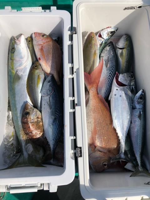 今朝は潮の加減良かったのか、マダイ、ヤイトの良型が回りよくアタリました。他、ハマチ、メジロ、シオと色々でした。今シーズン初めてサバが一時よくアタリました。大サバでしiPhoneから送信