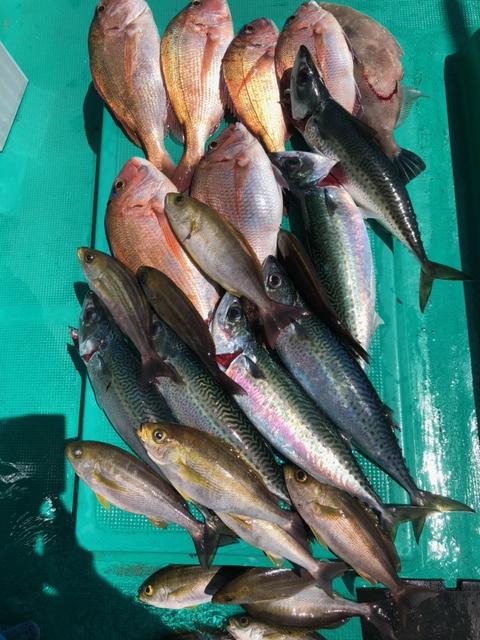 京都・ウォン様ら−マダイ35~45センチ7枚・白タイ45センチ2枚・ サバ45センチ6本・イサキ25~28センチ15匹