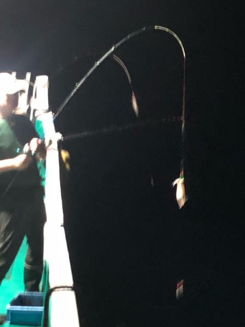 今晩はやり出しからほどほど下り潮が速く、道具になる限界の速さでした。潮速かったですがポツポツですが乗ってきました。9時前くらいから、一段と速くなりさっぱり乗らなくなりました。今晩は潮と風が反対のため、ガチャガチャ波あり、お客様船酔いで早上がりしました。
